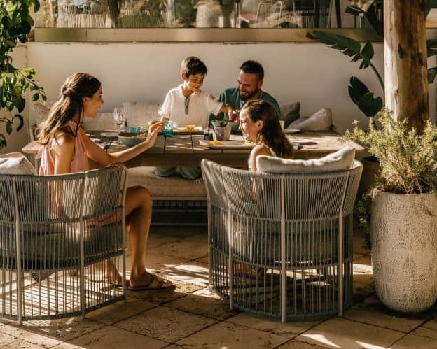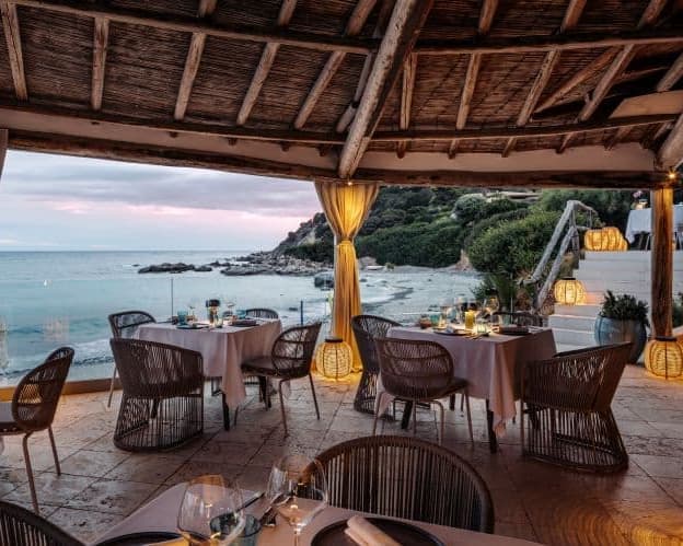 2 ristoranti con spazi interni ed esterni, 2 bar, pizzeria e gelateria Ristorante Artigiani e Terrazza: aperto per colazione e mezza pensione, con una ricca proposta di piatti a base di prodotti locali. Ristorante Kento BAY e belvedere: nuovo ristorante à la carte con vista mare, che offre uno stile mediterraneo a pranzo e una cucina innovativa e intrigante che unisce Sardegna e Giappone a cena. Sudoki Raw Bar e altro: bar all'aperto che serve tapas giapponesi.